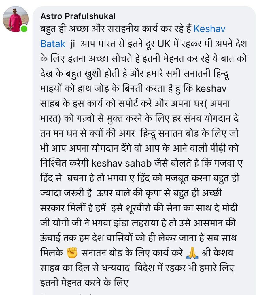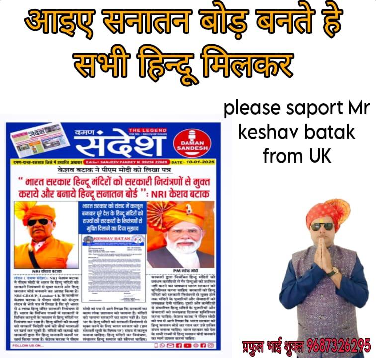 मिलके सनातन बोड़ के लिए कार्य करे श्री केशव